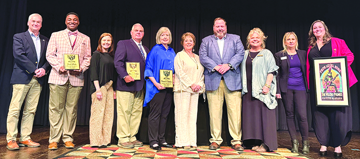 Steven Nolen, Francis Butler and Sean White were all honored by the Fayette Chamber of Commerce on Thursday, Nov. 6 at the Fayette Civic Center. Steven Nolen was named 2025 Citizen of the Year, Francis Butler was named Volunteer of the Year and Sean White was recognized as Junior Citizen of the Year. Pictured above from left to right are Mayor Rod Northam, Sean White, Celeste Kennard, Steven Nolen, Francis Butler, Kathy Bordelon, Rep. Bryan Brinyark, Emily Montague, Jennifer Robertson and Kelly Foster.