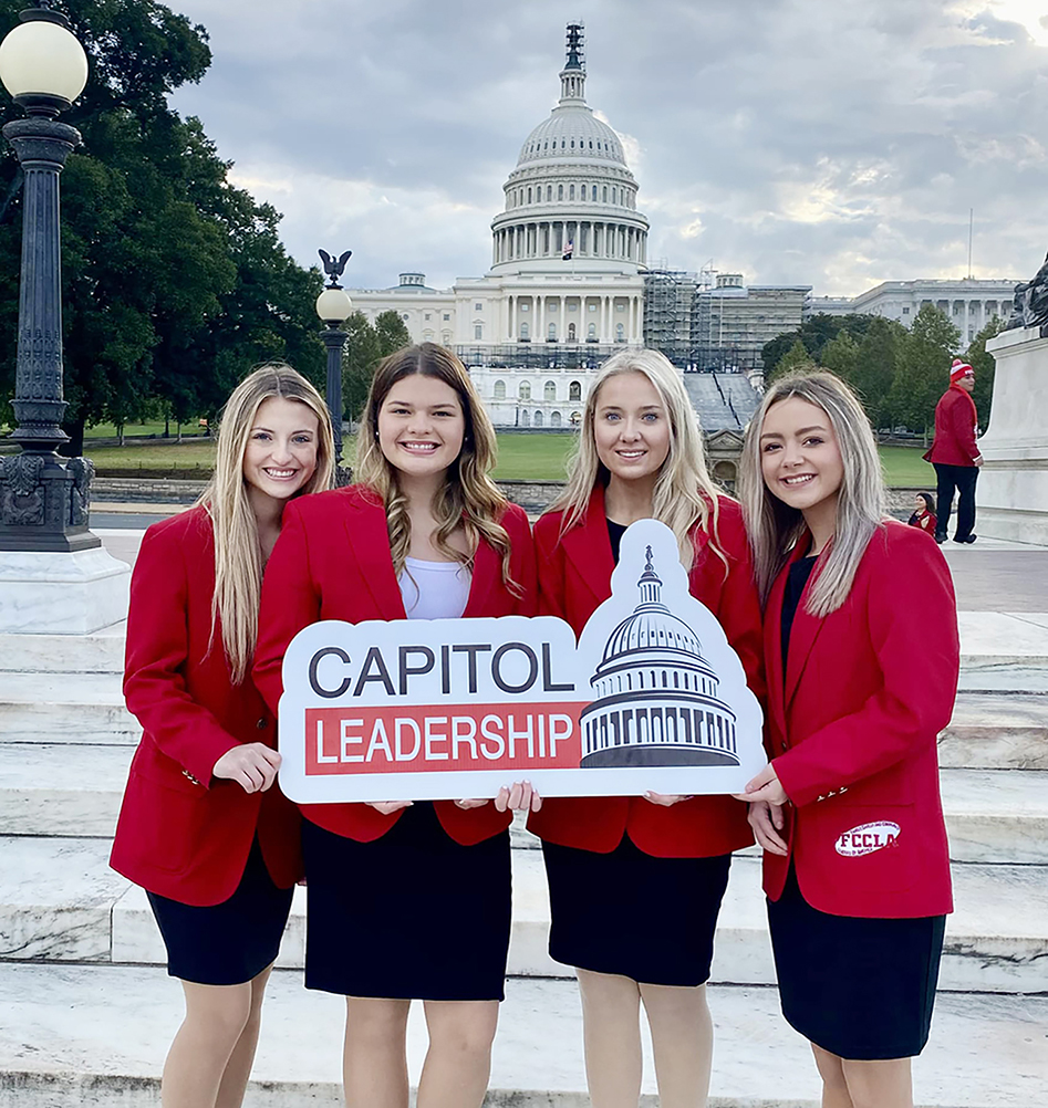 Hubbertville FCCLA Chapter Officers Kaylee Crumpton, Ella Kate Curington, Ana Tingle, and Layla Frederick, along with Chapter Advisor Rhonda Dunavant from Hubbertville School, attended FCCLA’s Capitol Leadership program, where they joined with youth leaders from across the nation.